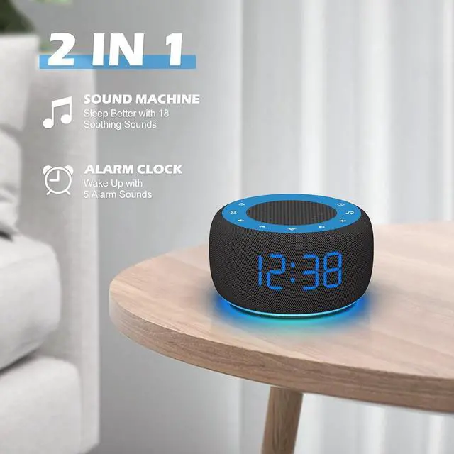 • 2-in-1: Sound machine and alarm clock, all in one. Get a good night's rest while still getting up on time. Its high-quality 5W speaker help block disruptive environmental noises.