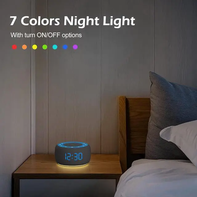 Eyesoul Sound Machine & Alarm Clock 2-in-1, 0-100% Clock Face Brightness, Bottom Colored Light, Sleep Timer, Precise 30-Level Volume Control White Noise Machines