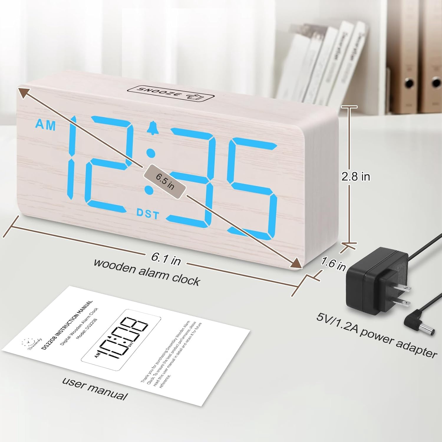 Eyesoul Wooden Digital Alarm Clock for Bedroom - Desk Clocks for Living Room with Large Numbers, Loud Alarm for Heavy Sleepers with Volume Control, Dimmer, DST, Office Wood Decor (Adapter Powered)