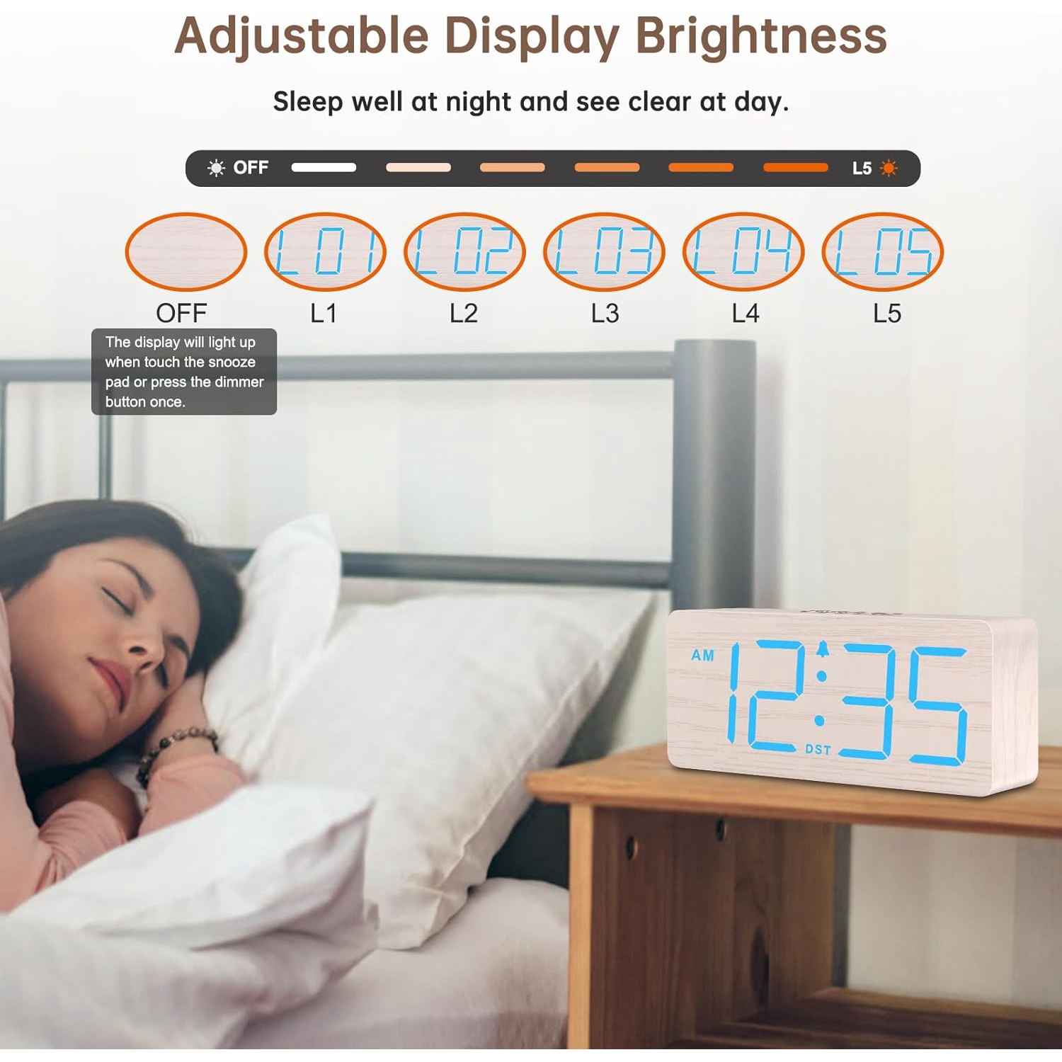 Easy To Use Wooden Digital Alarm Clock with Large Numbers: This modern electric alarm clock is designed with big bold 1.8 inches numbers that can be easily seen across the room, and simple to set, making it an ideal small digital clock for kids, teenagers, adults, seniors and the elderly. (Notice: The display only lit when plugged in)