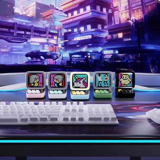1. Meet Divoom Ditoo - Its the most visually pleasing, funnest, and feature-packed little speaker you can get. The keys on this model are unique in that it uses backlit mechanical keyswitches on mini keyboard and the bright colors on the 16 x 16 pixel "monitor" which adds to the theme of a small retro computer.