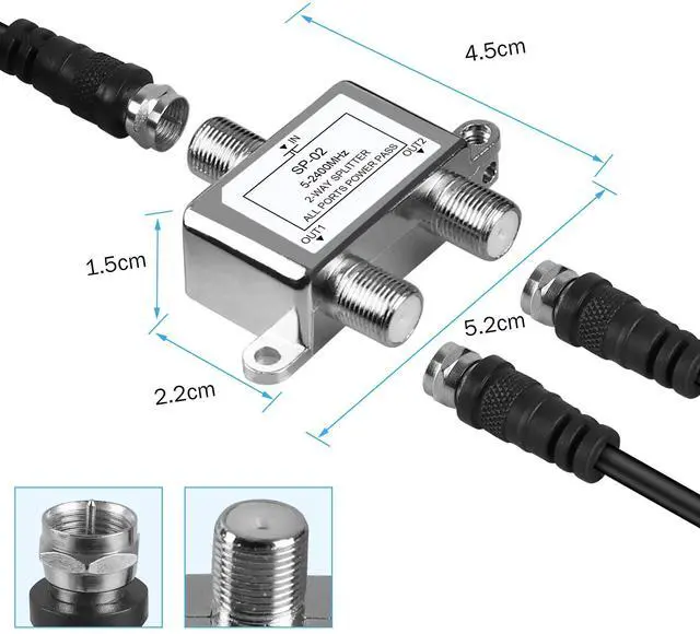 - [INSTALLATION STEPS]Prepare the coaxial cable and F-type male connectorStrip the coaxial cableConnect the coaxial cable to F-type male connectorConnect the coaxial cable to the coaxial splitter. In order to make your satellite connection balance and easier, all coaxial ports of the dispenser are power passing. (NOTE: ONLY One Highest Voltage is Allowed to Pass At A Time)