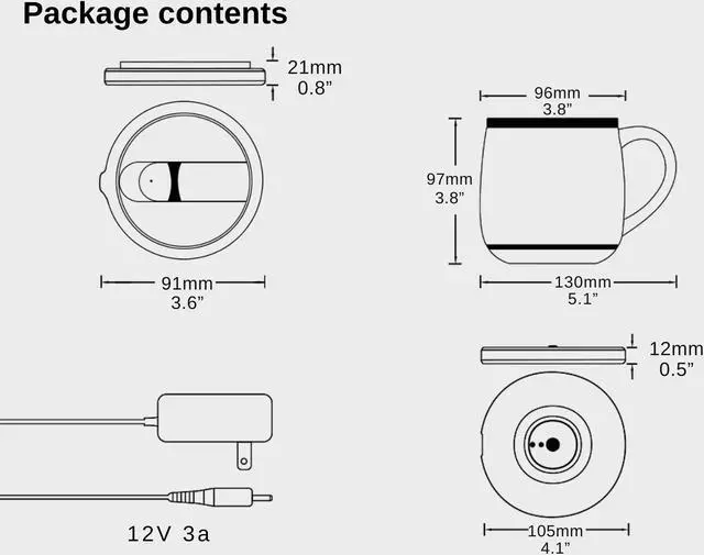 Spill-Resistant Lid and Lightweight design The spill-resistant lid maintains your drink's perfect temperature, preventing spills. without battery the empty weight only 200g, it's an ideal on-the-go heating mug for coffee.