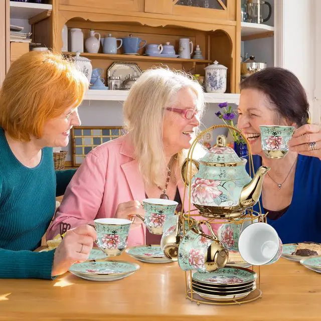 With the tea set, you can enjoy a soothing cup of tea in an elegant and peaceful environment, making it a soothing and relaxing activity that can help alleviate stress and promote relaxation.