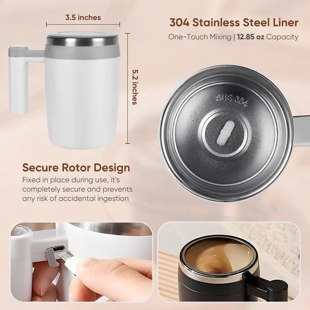 We recommend hand washing only to protect the magnetic motor and extend the life of the mug. The 304 stainless steel interior and detachable magnetic stir bar make cleaning super easy—just rinse with running water.
