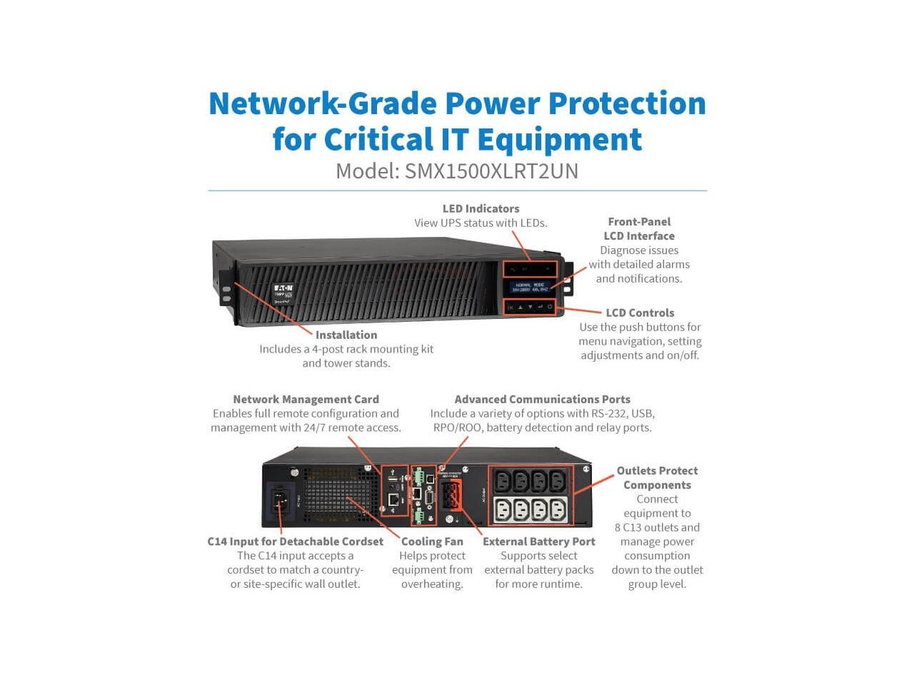 - Protects equipment against blackouts, brownouts, overvoltages, surges and line noise