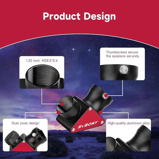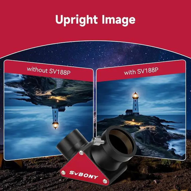 Correct upside down and left right reversed image; the view image is upright; but left and right reversed if use the 90 degrees to your telescope