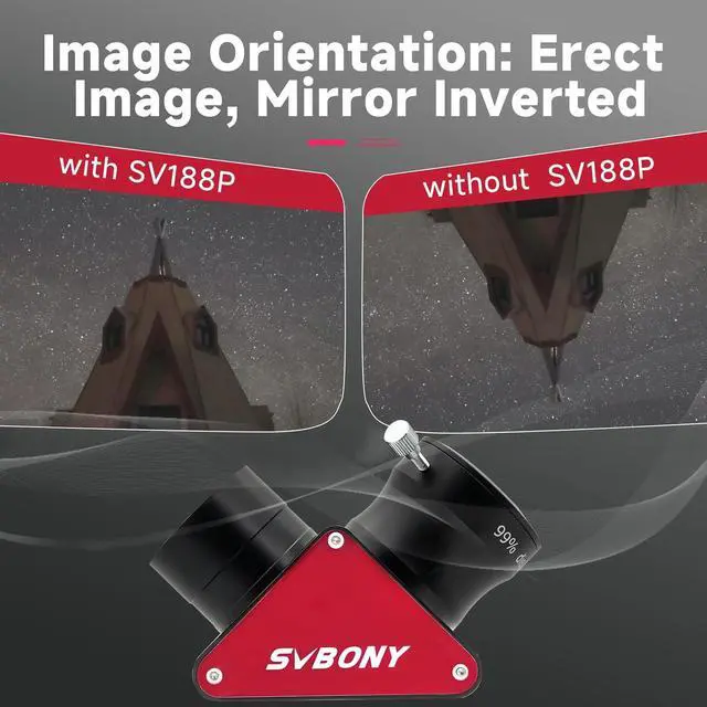 Correct upside down and left right reversed image; the view image is upright; but left and right reversed if use the 90 degrees to your telescope