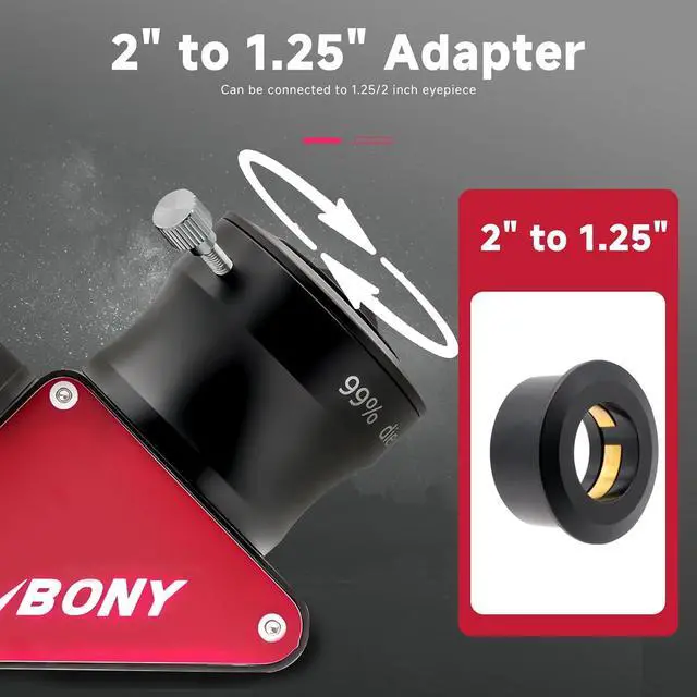 1.25 inches nosepiece fits 1.25 inches telescopes; accepts standard 1.25in filters; eyepieces; Barlow lenses and other accessories with a 1.25in insert barrel