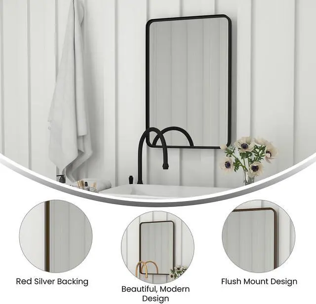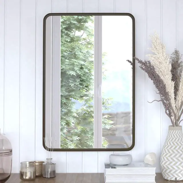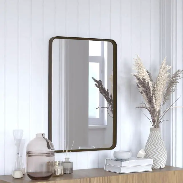 Liven up any space and gather natural light for an open, airy look with this wall mount mirror. The modern design boasts a slim, rectangular metal frame that lends an up-to-date look to almost any decor. HD float glass with real silver backing provides high reflectivity for a distortion-free image.