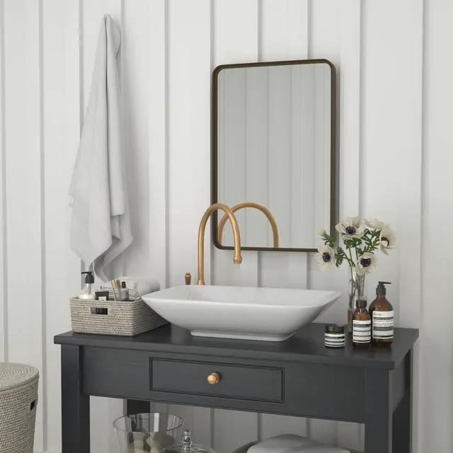 Upgrade your wall décor with this wall mount rectangle metal framed mirror.