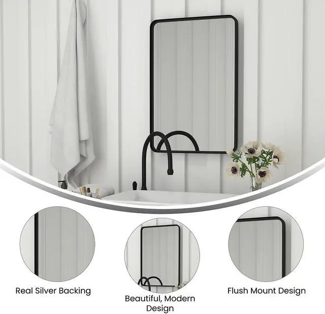 Liven up any space and gather natural light for an open, airy look with this wall mount mirror. The modern design boasts a slim, rectangular metal frame that lends an up-to-date look to almost any decor. HD float glass with real silver backing provides high reflectivity for a distortion-free image.