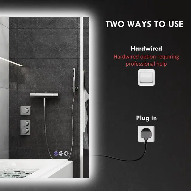Anti-Fog & Memory Function: Effortlessly maintain a clear mirror with the anti-fog function. Activate the defogger button to defog our LED mirror for constant clarity. The defogger turns off after 1 hour for your convenience, and the memory function keeps your brightness and color setting.