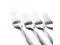 The forks come in set of four and are in: 7.5 x 1.0 x 0.10 - 1.3oz