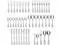 Includes a 45-piece flatware set for 8 people, plus a 5-piece serving set. Each of the 8 flatware place settings includes a dinner fork, salad fork, dinner knife, dinner spoon, and teaspoon. Serving set includes a serving spoon, pierced serving spoon, sugar spoon, butter knife, and serving fork.