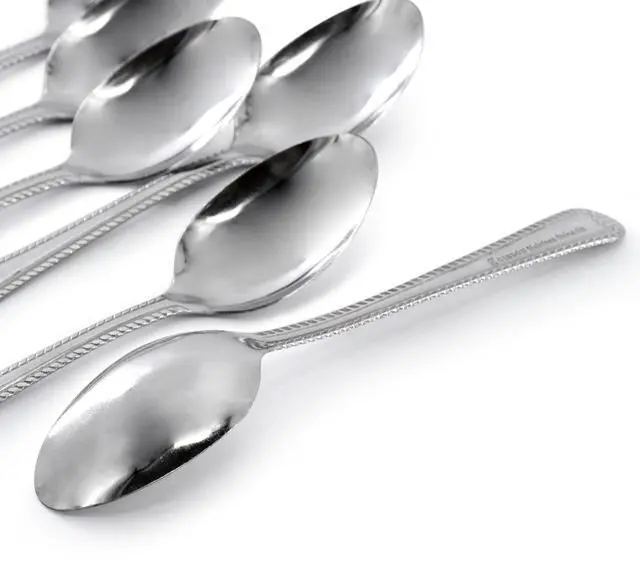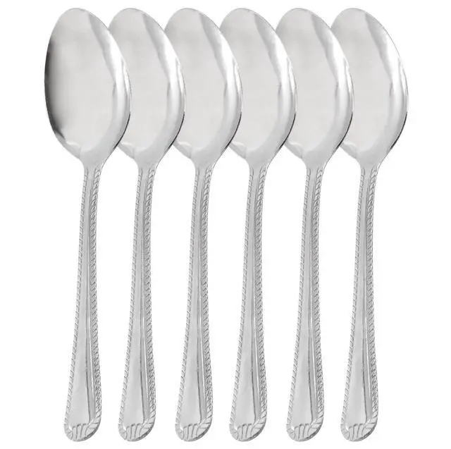 The Gibson Home Tustin 6 piece stainless steel dinner spoon set is the perfect add on spoon set for every day dining. Made with stainless steel that is dishwasher safe for easy clean up, this set of 6 dinner spoons are the perfect addition to your flatware collection. Features ornate embossed stripe rimmed handles that are ergonomic for comfortable use. Lightweight construction.