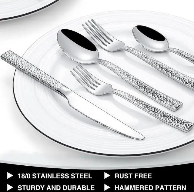 ASHIONABLE APPEARANCE - Elegant style with hammered design on the front side of each square handles, Making every meal like a high-end banquet and bring a pleasant dining atmosphere, Matching different tablecloths, The design of the handle can highlight more styles