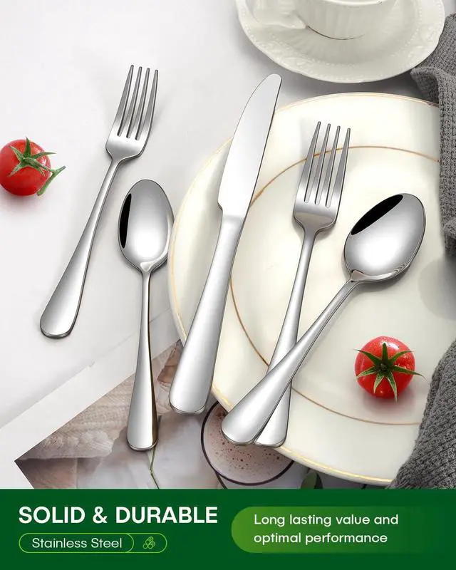 HIGHLY MIRROR POLISHED: Multiple times of fine polishing gives the flatware sets an enduring mirror finish, perfectly smooth and free of rough edges. The classic and timeless minimalist design easily matches all types of table settings and is perfect for weddings, housewarming, or Mother' s Day gifts