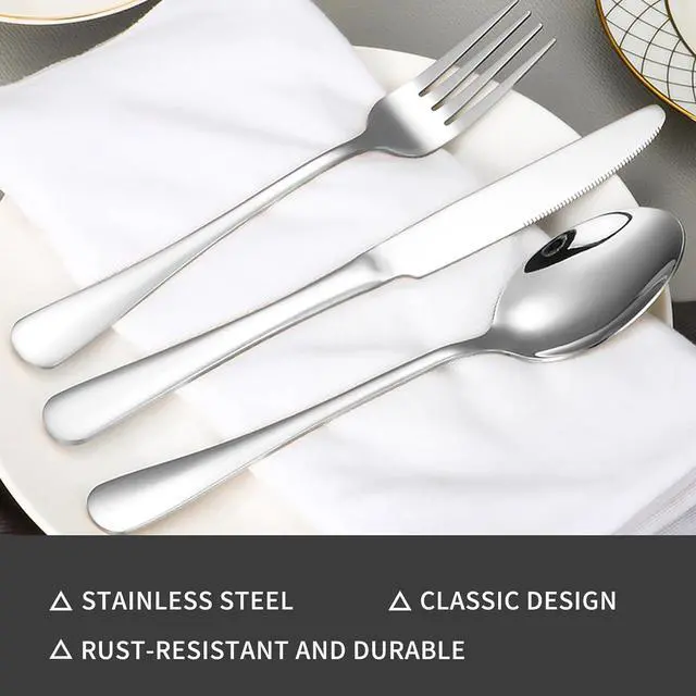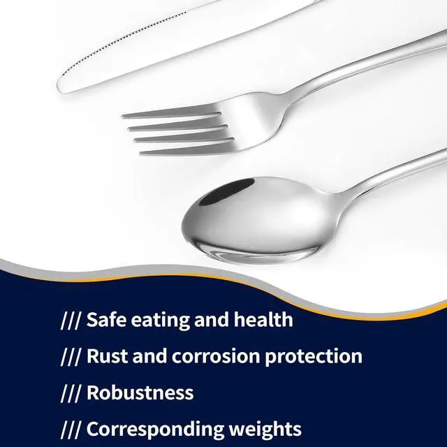 High Quality Material Flatware SetThis flatware set are made of food grade stainless steel which is sturdiness ensures not bend easily, rust-proof, corrosion resistant, non-toxic, BPA free, no metal aftertaste providing you with long - term use. Best of all, they' re dishwasher safe.