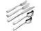 S IN THE BOX: Includes a 65-piece flatware set for 12 people, plus a 5-piece serving set. Each of the 12 flatware place settings includes a dinner fork, salad fork, dinner knife, dinner spoon, and teaspoon. Serving set includes a serving spoon, pierced serving spoon, sugar spoon, butter knife, and serving fork.