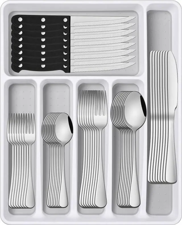 Flatware Sets With Organizer: Each Set Contains 8 Dinner Knives, 8 Steak Knives, 8 Dinner Forks, 8 Dinner Spoons, 8 Salad Forks, 8 Tea Spoons And 1 Organizer.