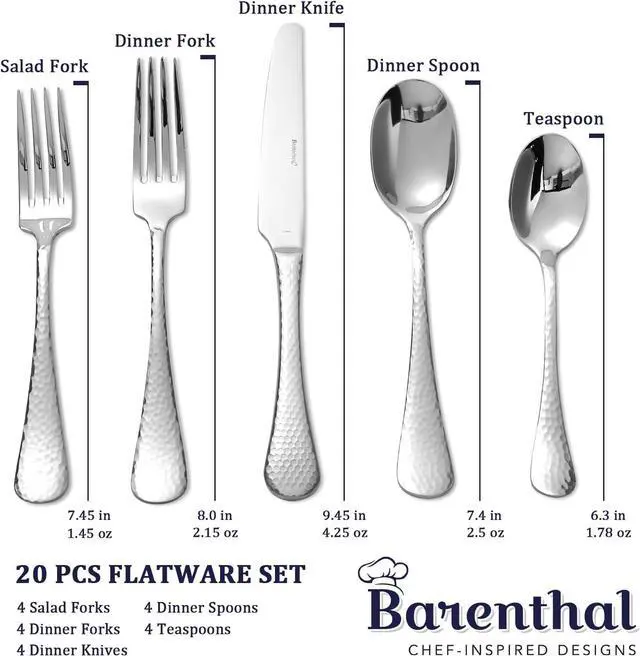 TOP QUALITY: Barenthal was founded in 1947 in a small rual viliage in Farance, with nearly 80 years, exquisite craftsmanship. We use polished 18 /10 top-grade stainless steel to refine our flatware set, ensuring long-lasting performance.