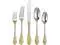 (4) each: dinner fork, cake fork, dinner knife, dinner spoon, and teaspoon