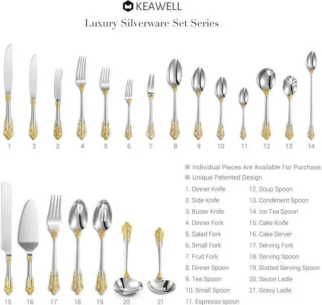 High-luster finish, Elegant upscale contemporary-looking silverware set. Perfect for any finer occasion, an outstanding gift for the couple.