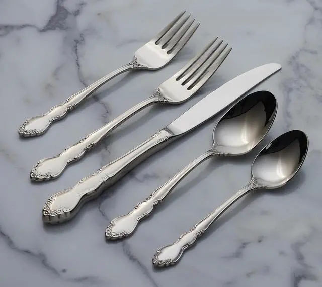 WHY ITS SPECIAL: Oneida' s Dover flatware stands out with its dramatic design and intricate swirling floral details. Its elegant, scroll-like pattern adds sophistication to your table, blending refined aesthetics with enduring appeal.