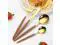 DISTINCTIVE WOOD-GRAIN HANDLES: The eye-catching gold finish stands out from ordinary silverware, paired with uniquely textured wood-grain handles that create a vintage yet luxurious aesthetic. The smooth surfaces and slim ergonomic design not only enhance its upscale appearance but also prevent hand fatigue during use. For those seeking distinctive tableware, this set is unmissable