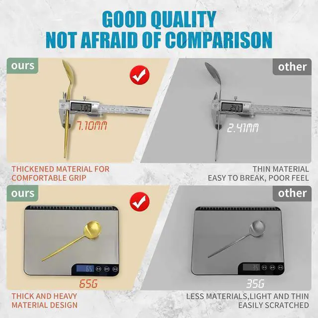 DURABLE AND SAFE: Crafted from premium stainless steel. Durable and healthy for everyday use. The heavy-duty solid handle is not easy to deform, which is easy to compare with another cheap cutlery set