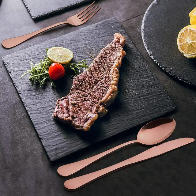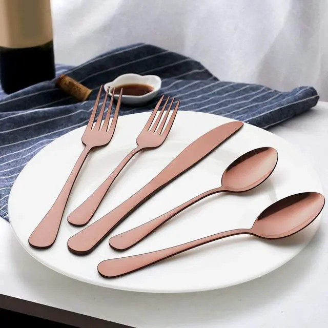 Modern flatware, copper colored silverware with elegant look, no worry about color fading or chipping as its a metal layer that comes from vacuum electroplating technology