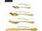 DESIGN: Handle Delicate engraving and inlay handle, great weight size of eating utensils, these gold flatware have a nice weight to them, not too heavy and not too light, well designed to provide a good grip.