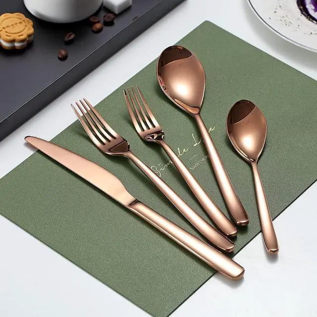 Titanium Copper Noble Plating: The Copper color of the silverware set will stand out on your tabletop. They are beautiful and great that You will get a lot of " like", " praise", " laud" from your guests when you dinning together, from your funs when you share a video shot of your dinning. This is the just silverware that you worth to have.