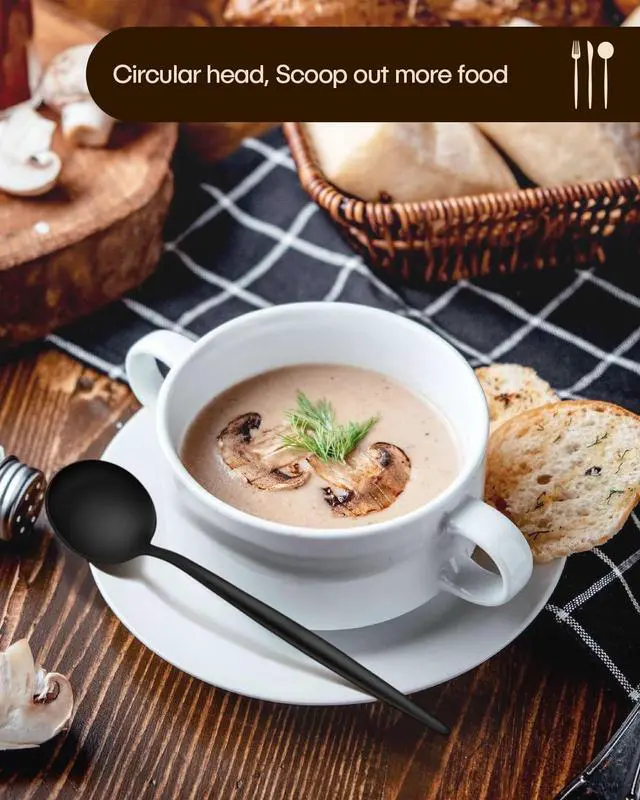 ERGONOMIC HANDLE, PROPER WEIGHT - The elegant rounded curves make them timeless, with proper gauge thickness and weight to hold comfortably. A smooth edge ensures safety and no scratches, each black utensil set is solid, well-balanced, and comfortable. A good set of tableware will make you feel happy and increase your appetite when eating.