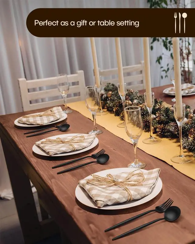 SLEEK AND ELEGANT DESIGN - This black matte silverware set has classic profiles and clean lines, with a distinct sense of design and luxury that can match well with any style you already have. The matte black finish, special shape, and exceptional quality add an elegant touch to any table setting. Perfect gift for your family and friends.