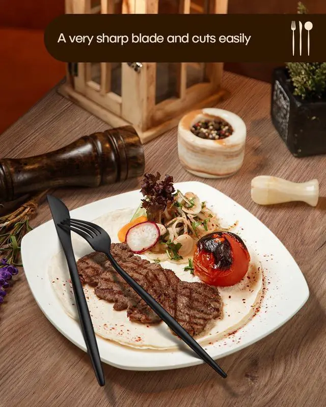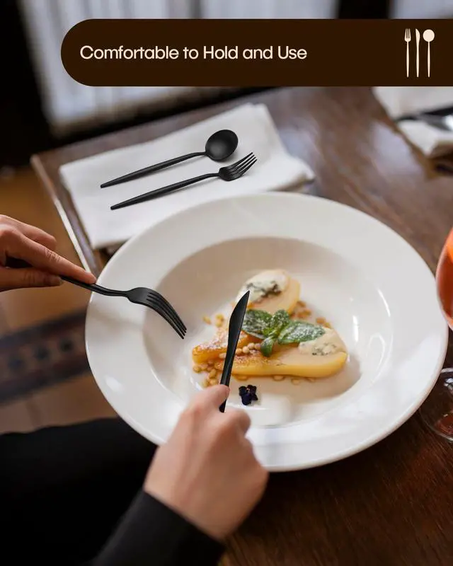 FOOD GRADE STAINLESS STEEL - Our matte black silverware is made of premium stainless steel, it offers nice resistance to rust and corrosion to get the most sturdy and healthy experience while using, and never bends in daily use, much better than the cheaper ones. You will be well impressed by the good quality from the first sight of it.