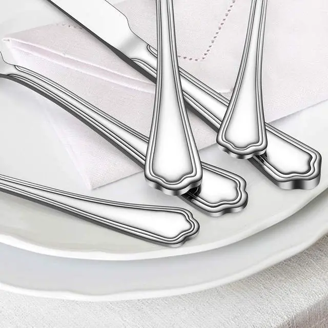 Modern silverware, 30pc cutlery set features an attractive scalloped-edge handle with decorated lines for ease of use, nice weight and great size allow you to hold comfortably, elegant appearance brings you a special dining experience