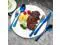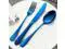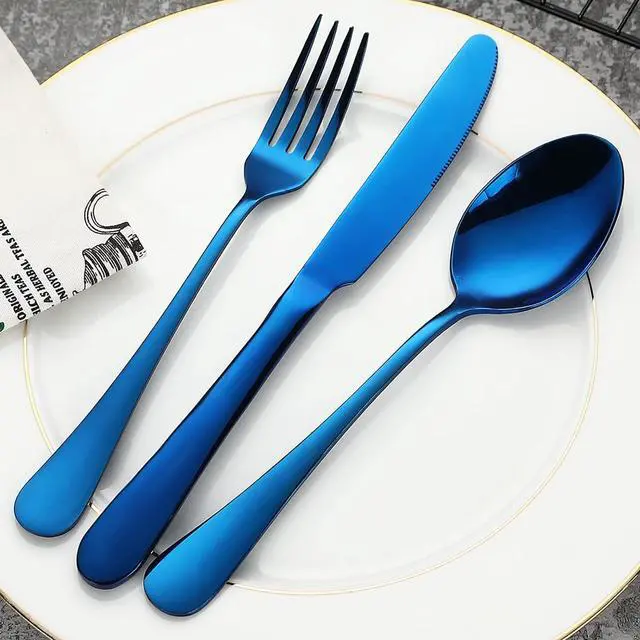 Service For 4 ]: The blue silverware set includes 4 forks, 4 salad forks, 4 knives, 4 dinner spoons and 4 dessert spoons. Can satisfy most families of 4
