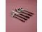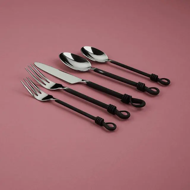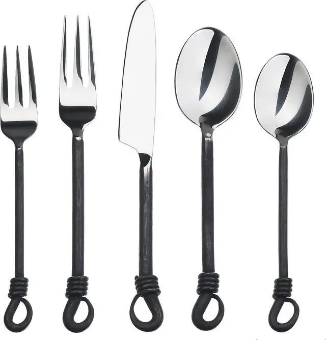Includes 4 each: dinner fork; dinner knife; salad fork; table spoon; teaspoon