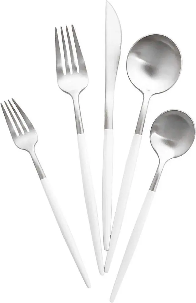 Set includes: Steak Knife, Dinner Spoon, Dinner Fork, Dessert Spoon, Salad Fork.