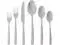 Set includes 8 each: salad forks, dinner forks, dinner knives, dinner spoons, and teaspoons, as well as two solid serving spoons