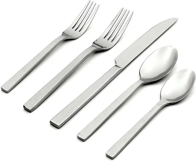 INCLUDES: This Oneida silverware set contains (8) Dinner Knives, (8) Dinner Forks, (8) Salad Forks, (8) Dinner Spoons, (8) Teaspoons, (1) Serving Spoon, (1) Pierced Serving Spoon, (1) Sugar Spoon, (1) Butter Knife and (1) Serving Fork. The Chef' s Table Hammered line was designed for casual restaurants and everyday home meals.