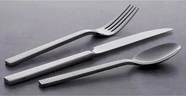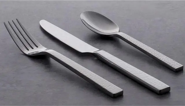 ARTISAN DESIGN: Heft the craft of hand-made to your home. This silverware set' s hammered notches dimple the handle so your table can rediscover that old-time feel of artisanal texture. Hold whats heavy. Hold Chefs Table Hammered.
