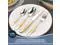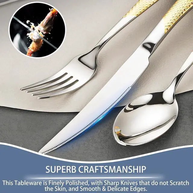 EXQUISITE CRAFTSMANSHIP: The highly polished surface makes the Knives Forks Spoons Set brighter and more luxurious, making it an attractive tableware on the table. The handle has ergonomic dimensions and weight, which can provide you with a firm and comfortable grip, and a comfortable tactile anti-skid handle to enhance your dining experience. Moreover, the smooth edges ensure safety and no scratches