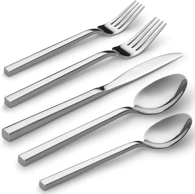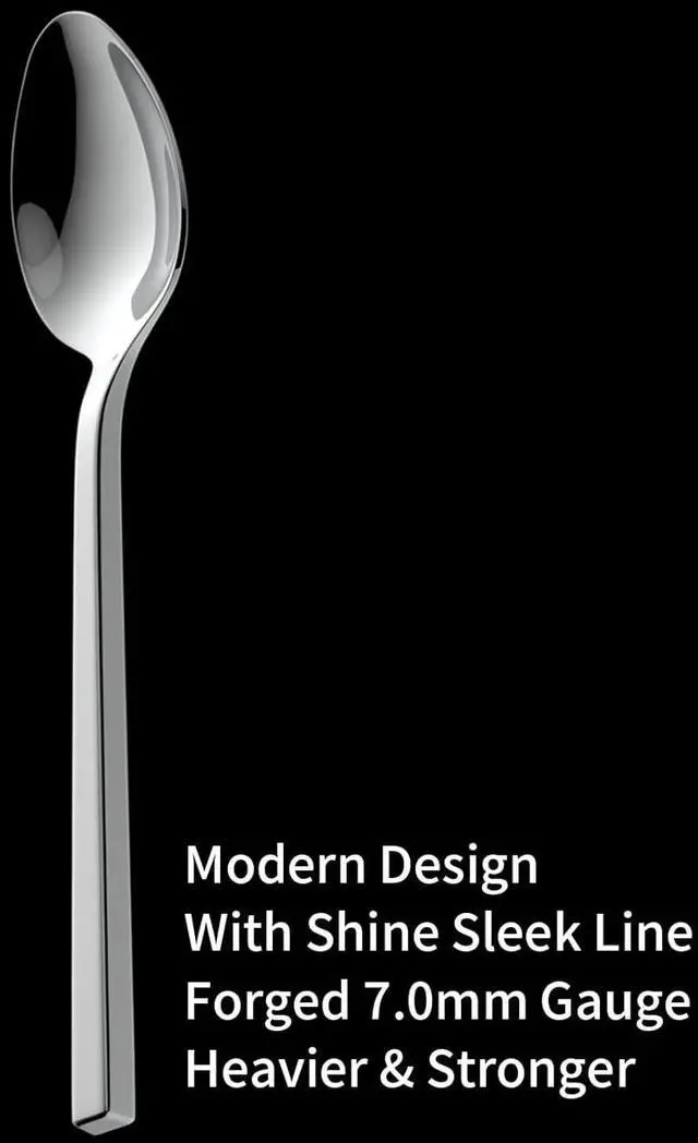 DESIGN AND APPEARANCE: Classic square handle shape with mirror finish, natural and elegant design. Smooth and silk surface without grain, easy to clean and care in daily use. Crafted forged process, strong and durableso that the flatware set has a thicker texture