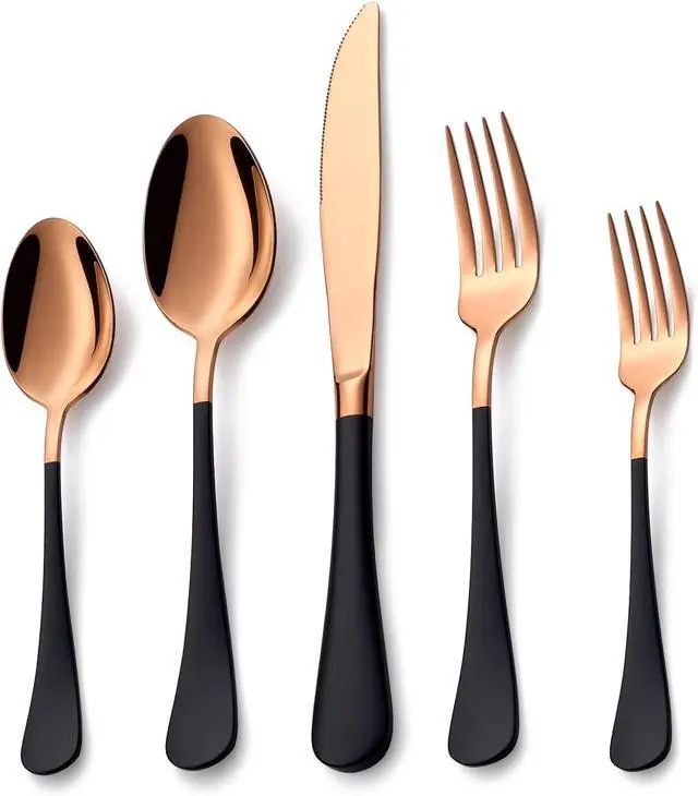20-Piece Silverware Set- Includes 4 dinner knives, 4 dinner forks, 4 dinner spoons, 4 salad forks, 4 teaspoons. The modern and contemporary design, unique mirrored & shinny polished, whether setting formal table for brunch or dinner with family or friends. durability and toughness suitable for everyday use or special occasions.