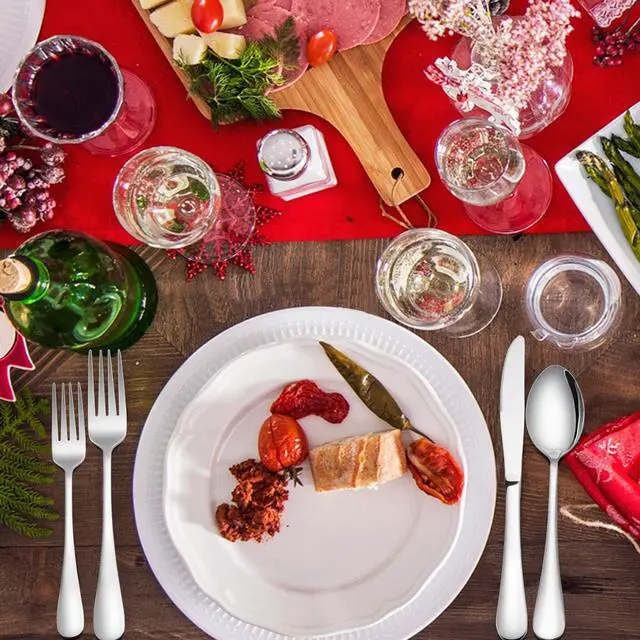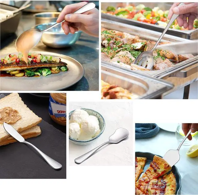 Utility, 45 piece stainless steel silverware set comes with all the basic pieces needed for serving, ideal for big family, entertaining, buffet, party, hotel, restaurant, bistro, camping, picnic, easy clean and dishwasher safe