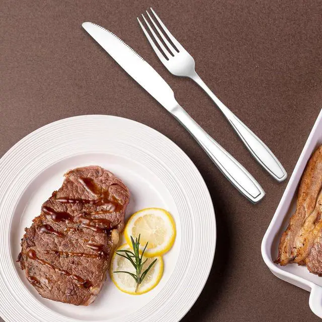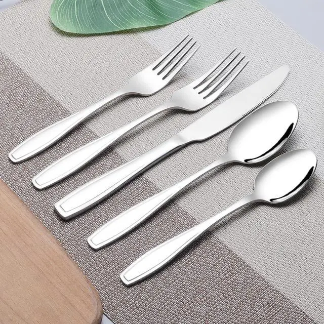 40 pieces flatware sets include: 8 dinner knives, 8 dinner forks, 8 dinner spoons, 8 dessert spoons and 8 dessert forks