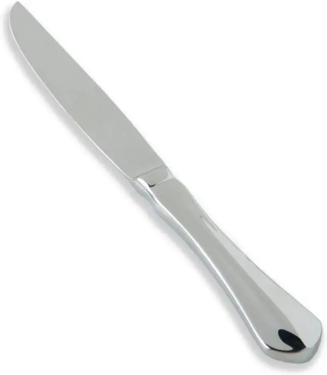 Set of 12 solid handle steak knives in Forge pattern; features heft, weight and balance in hand